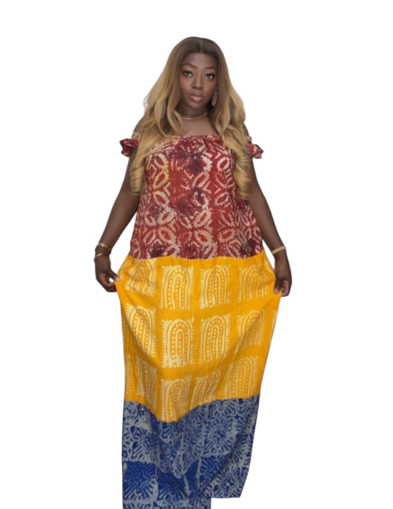 ZOE is a relaxed, easy-wear maxi gown made with beautiful mixed Adire patterns. It’s soft on the skin, breathable, and flows comfortably—perfect for days you want to look stylish with zero stress.