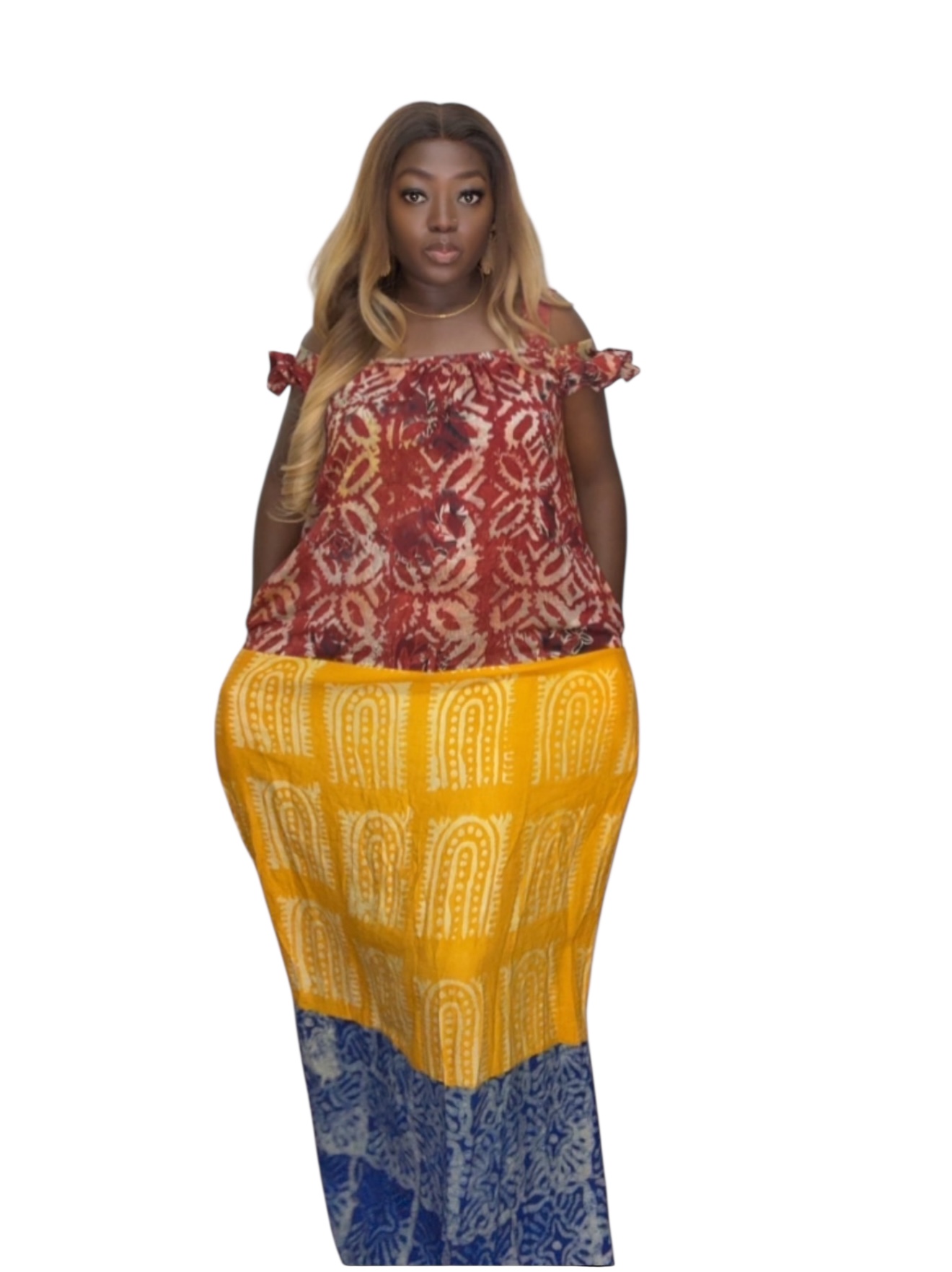 - Pattern: Mixed/different Adire prints for a unique statement look